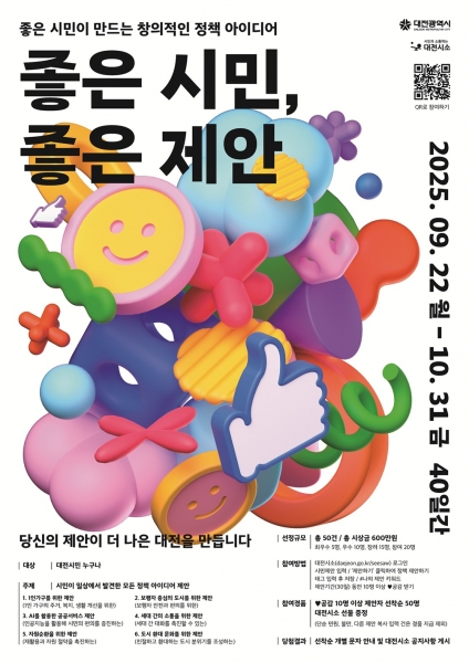[세종타임즈] 대전시는 시민참여 플랫폼 ‘대전시소’를 통해 9월 22일부터 10월 31일까지 40일간 ‘좋은 시민, 좋은 제안’ 공모를 실시한다.