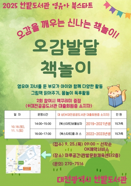 [세종타임즈] 대전 한밭도서관은 상반기에 이어 하반기에도 영유아 독서문화 프로그램 ‘북스타트’를 운영한다고 24일 밝혔다.