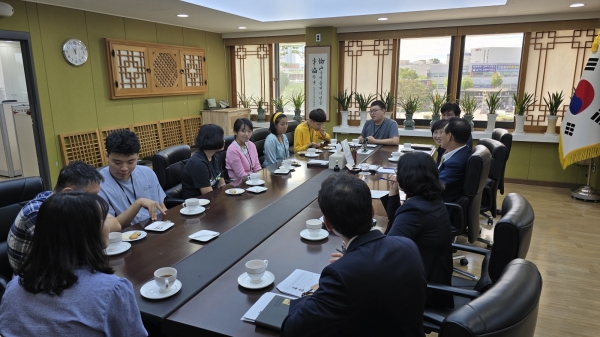 [세종타임즈] 논산시는 23일 관내 직업재활 시설인 ‘논산발그래일터’ 하주현 이사장과 종사자, 소중한사람들 근로자 7명을 초청해 소통의 자리를 마련했다.