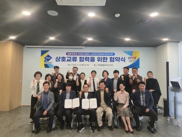 [세종타임즈] 홍성군은 지난 23일 청운대학교 학생종합라운지에서 소상공인연합회 홍성지부와 청운대학교 RISE사업단이 지역 소상공인 및 청년 창업 생태계 조성을 위한 상호협력 업무협약을 체결했다고 밝혔다.