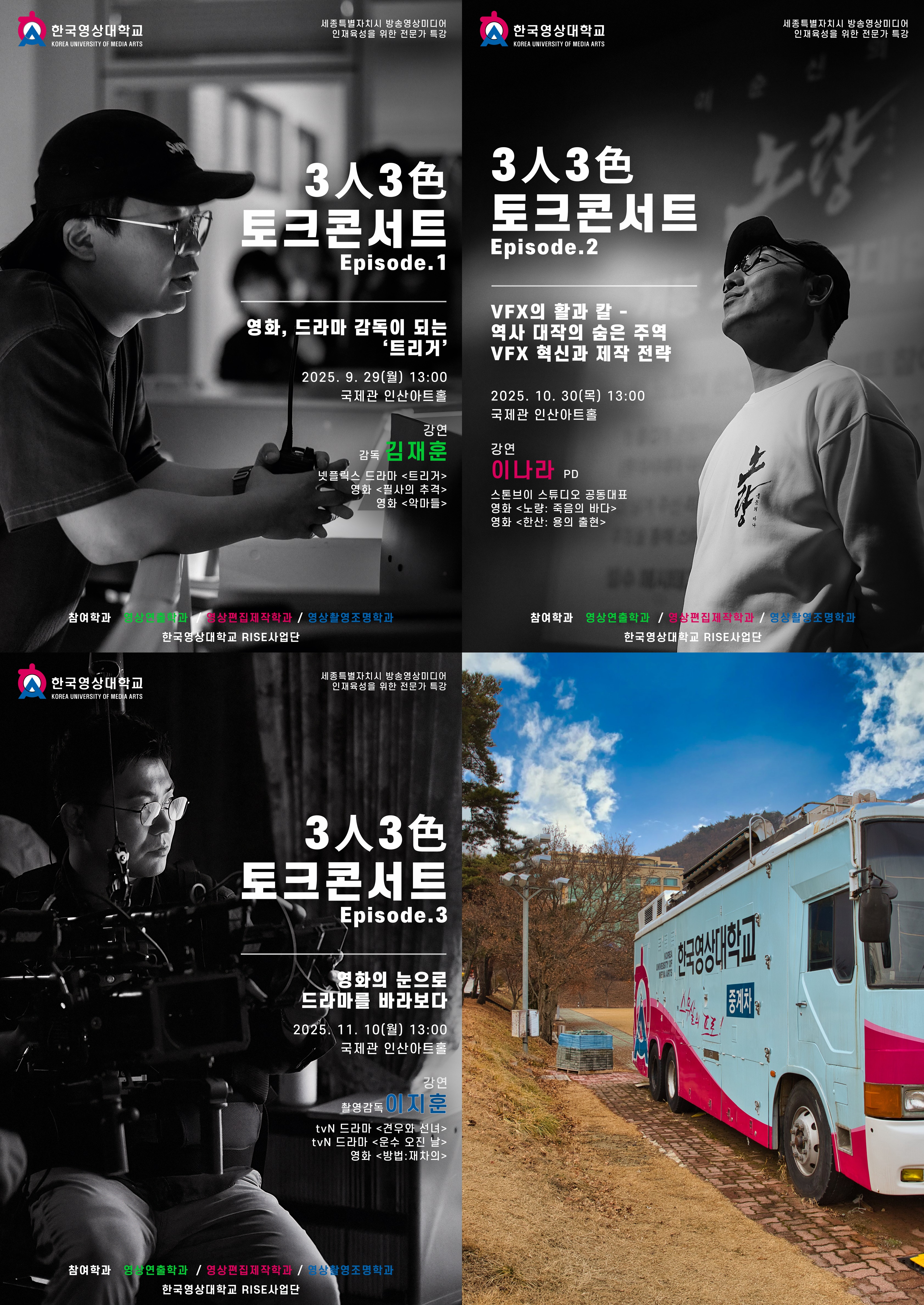 첫 번째 강연자는 넷플릭스 오리지널 드라마 ‘트리거’의 김재훈 공동 감독으로, 오는 9월 인산아트홀에서 특강을 연다. 이어 10월에는 VFX 전문기업 ㈜스톤브이스튜디오의 이나라 공동대표, 11월에는 tvN 드라마 ‘견우와 선녀’의 이지훈 촬영감독이 강연자로 나선다.
