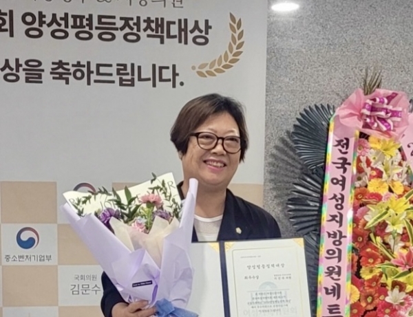 [세종타임즈] 서산시의회 가선숙 의원이 10월 1일 국회의원회관 대회의실에서 열린 ‘2025 양성평등정책대상’ 시상식에서 지방의원 부문 최우수상을 받았다.