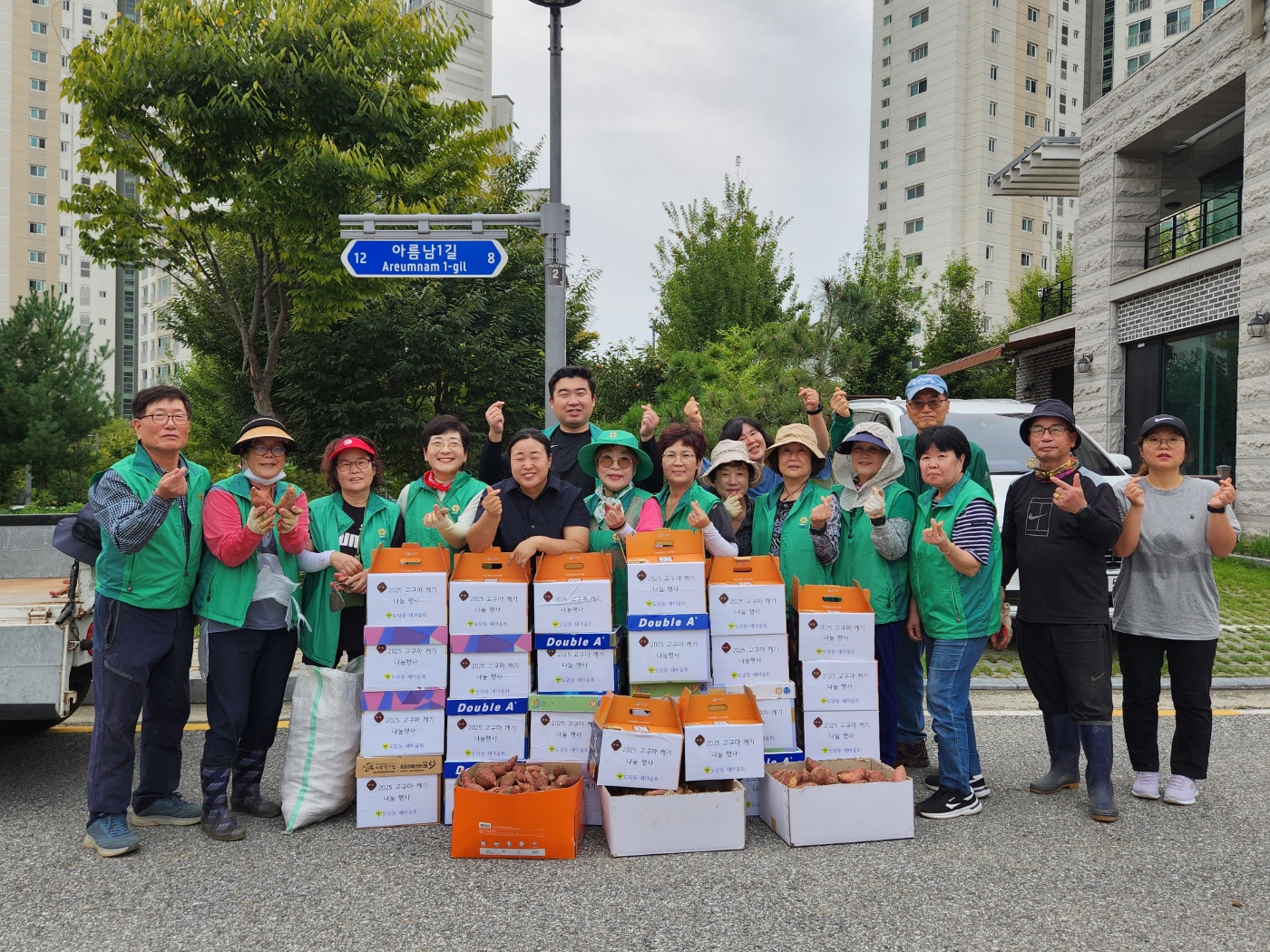 이날 행사에는 도담동 새마을협의회 회원들과 도담동 직원, 통장협의회장 등 20여 명이 참여해 직접 고구마를 수확하고 정성껏 포장한 후, 각 가정과 경로당을 직접 방문해 전달했다.