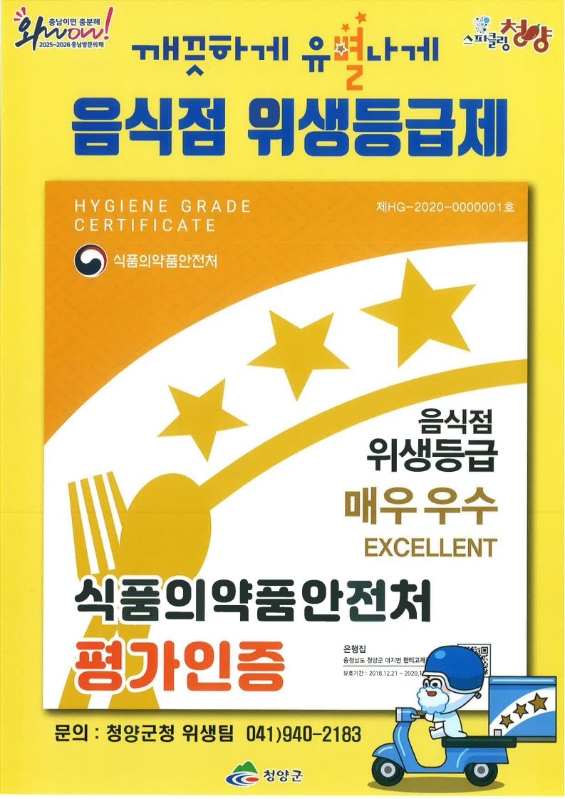 위생등급제 신청은 식품안전나라 온라인 접수 또는 청양군청 행복민원과 위생팀 방문 접수로 가능하다.