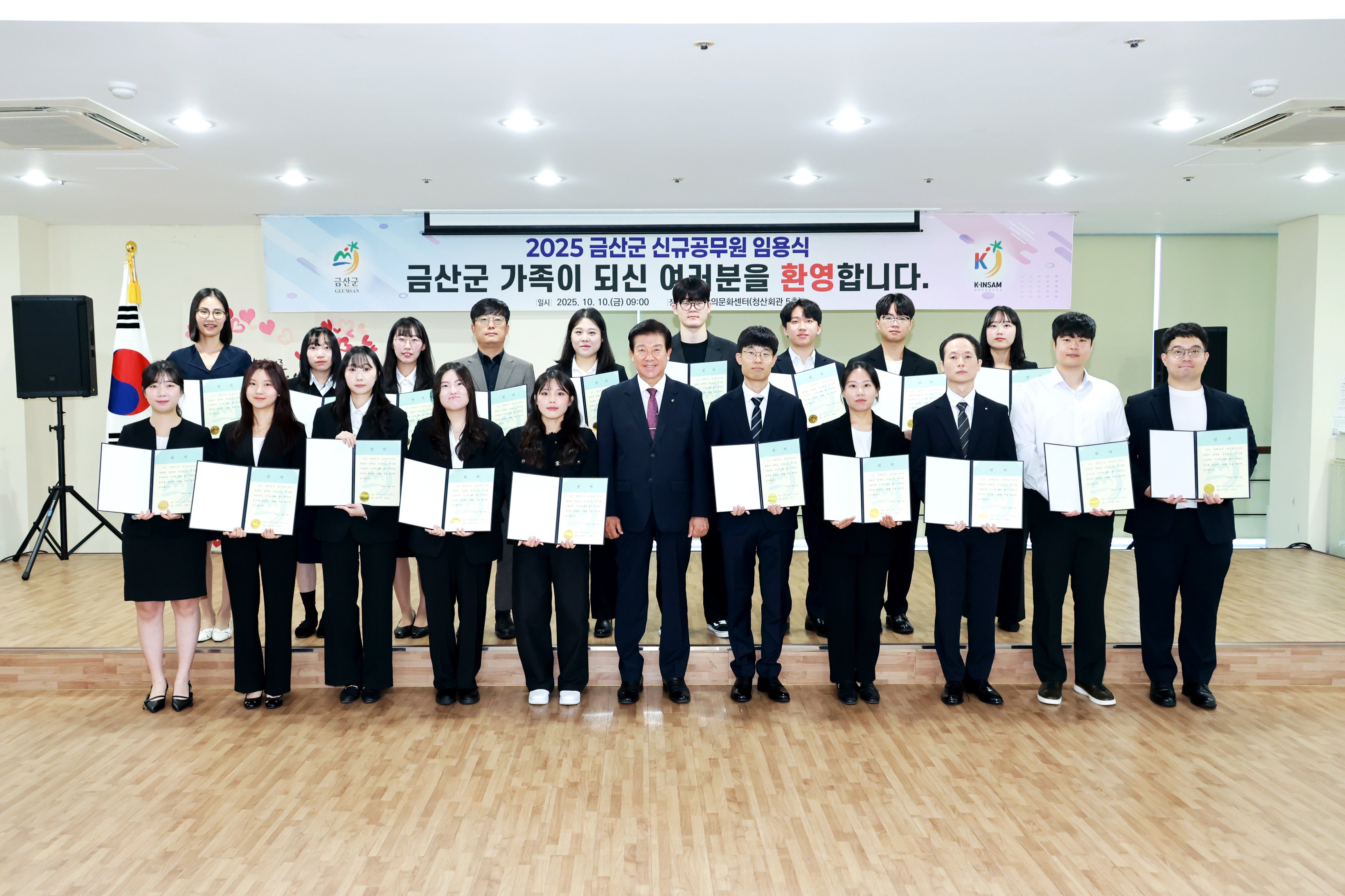이번 임용식에는 박범인 금산군수를 비롯해 간부 공무원과 신규공무원 19명 및 가족들이 참석해 새내기 공무원들의 첫 출발을 함께 축하했다.