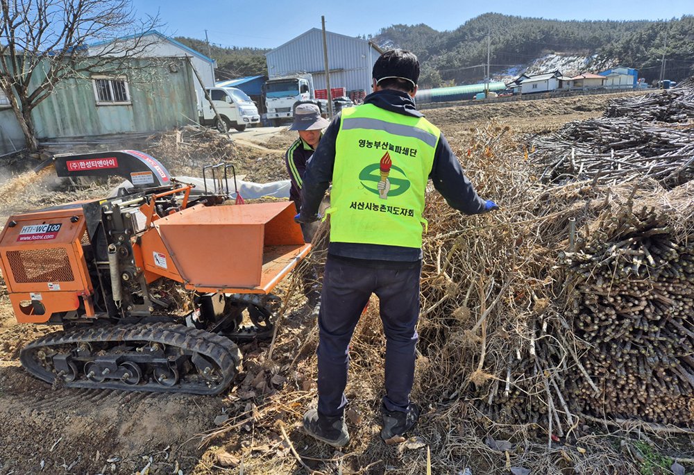 해당 사업은 영농 부산물 파쇄단이 신청한 농가에 직접 방문해 과수 잔가지, 콩대, 깻대, 고춧대 등의 파쇄를 지원하는 사업이다.