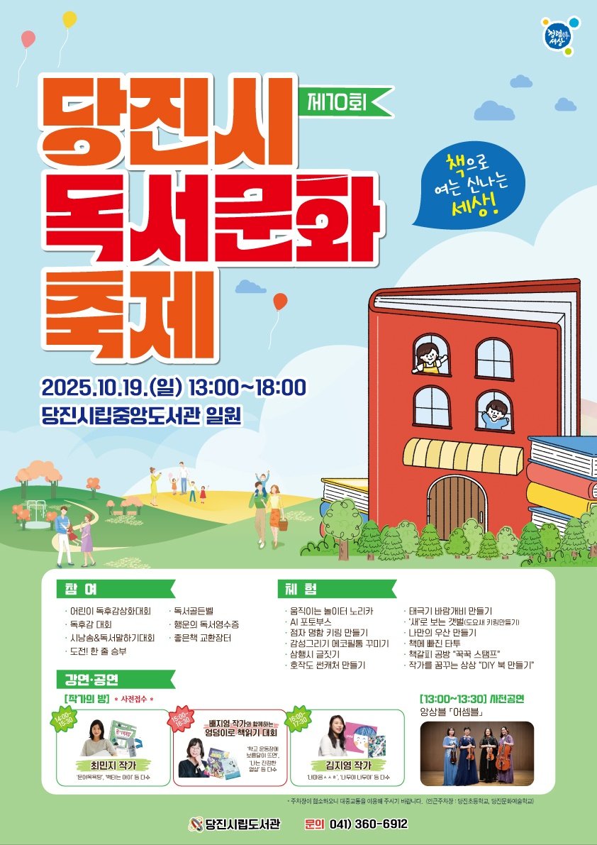 [세종타임즈] 책 읽기 좋은 계절 가을을 맞아 오는 19일 ‘제10회 당진시 독서문화축제’ 가 시립중앙도서관 일원에서 열린다.