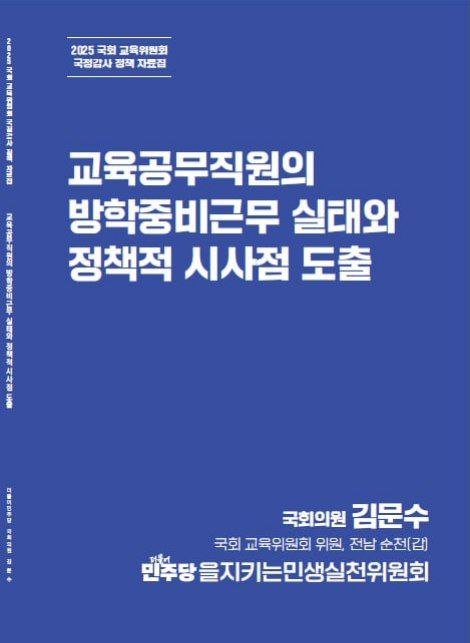 국회 교육위원회 소속 더불어민주당 김문수 의원(전남 순천갑)은 더불어민주당 을지로위원회의 의뢰로 작성된 ‘교육공무직원의 방학중비근무 실태와 정책적 시사점 도출’ 보고서를 통해, 방학 중 급식노동자 등 비근무자의 경제적 불안정이 구조적으로 고착화되고 있음을 확인했다고 밝혔다.