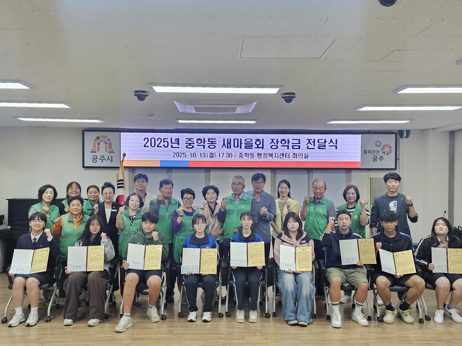 [세종타임즈] 공주시 중학동 새마을회(협의회장 정인묵, 부녀회장 오연욱)는 지난 13일 중학동 행정복지센터에서 모범 청소년 10명에게 장학금을 전달했다.