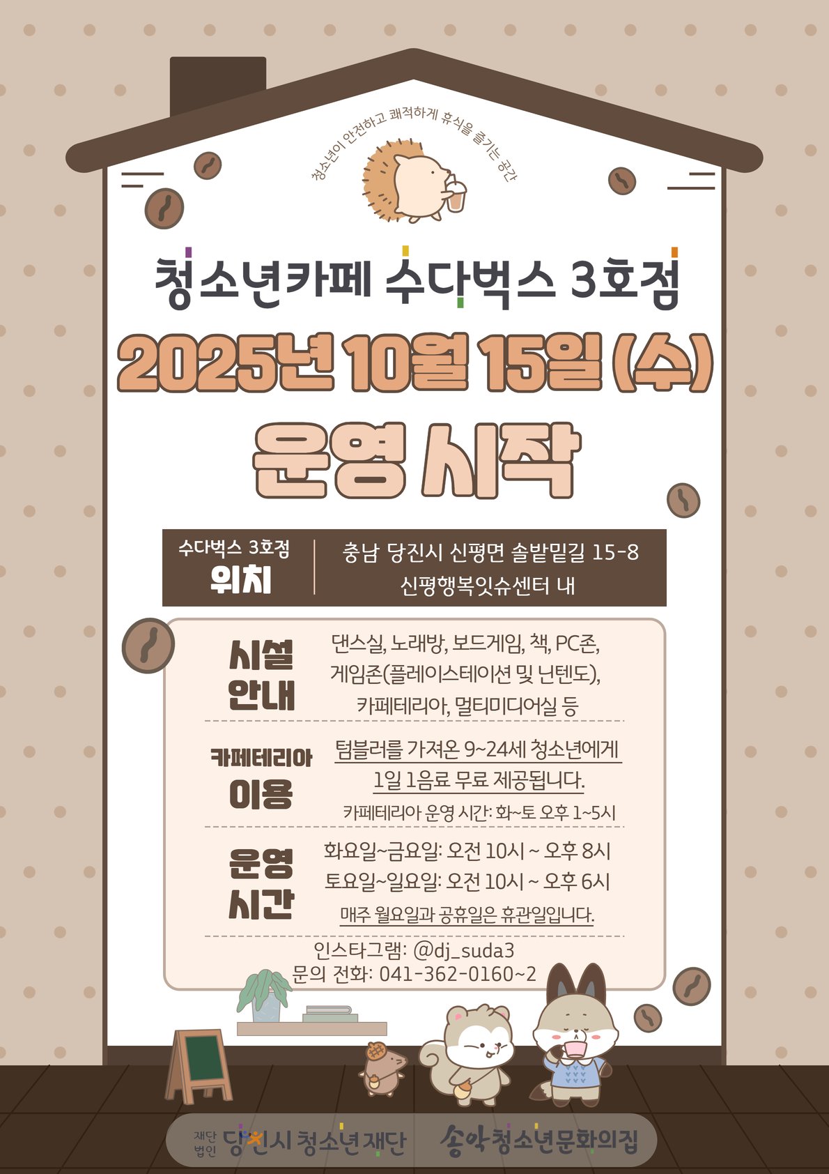 [세종타임즈] (재)당진시청소년재단 송악청소년문화의집(관장 김수진)은 10월 15일 당진청소년카페 ‘수다벅스’ 3호점 운영을 시작했다.