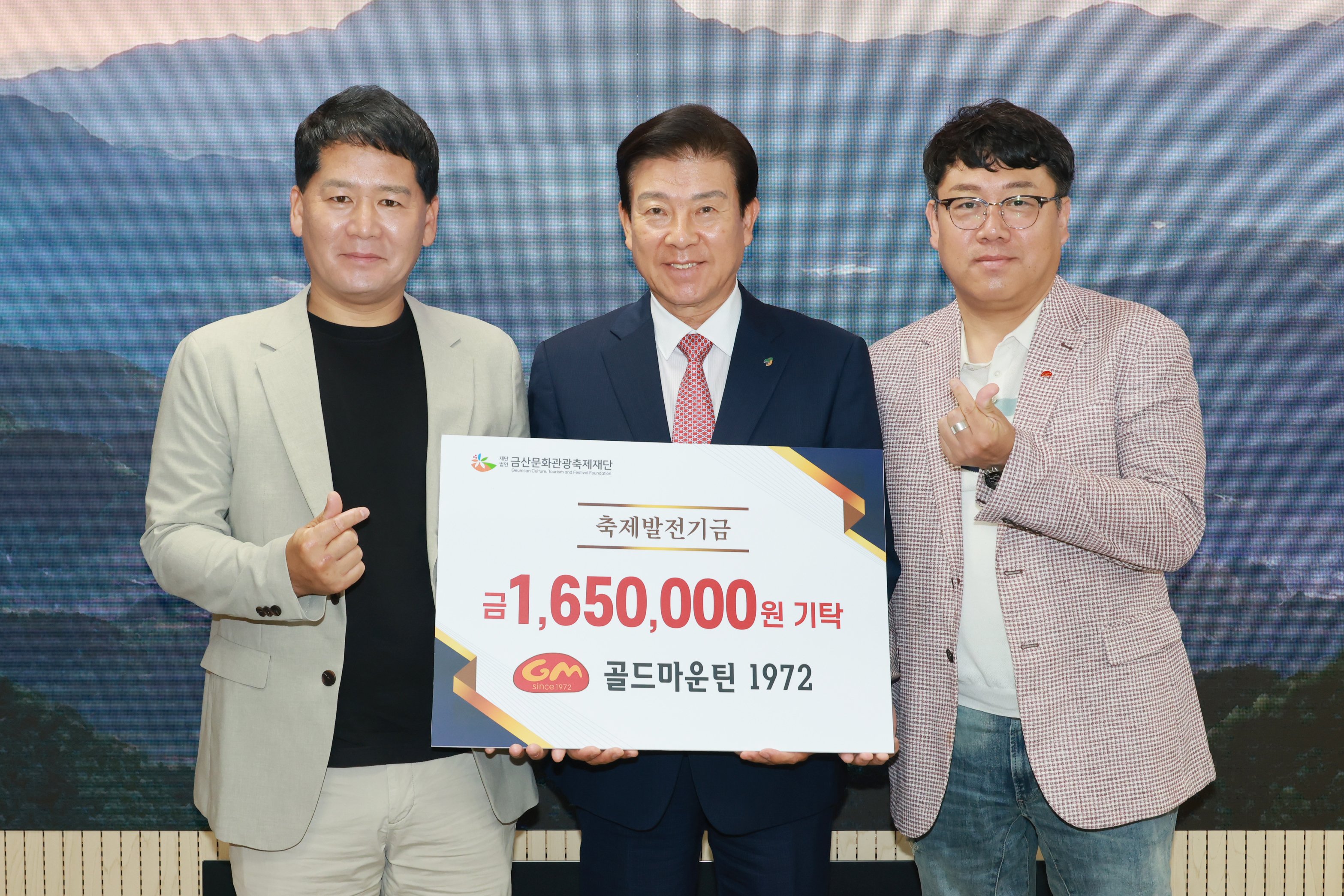 [세종타임즈] 금산군은 골드마운틴1972(회장 김형열)가 지역 축제의 성공적인 개최를 기원하며 축제 발전 기금 165만원을 기탁했다고 15일 밝혔다.