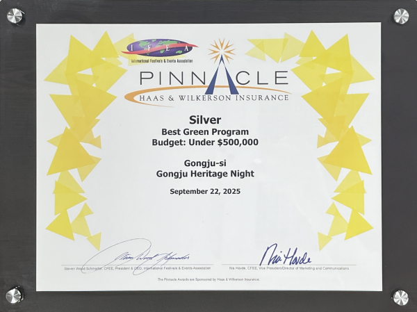 이번 성과는 지난해 피너클 어워드 한국대회 수상에 이어 올해 처음 세계대회에서 성과를 거두며 공주 국가유산 야행의 국제적 경쟁력을 입증한 것이다.