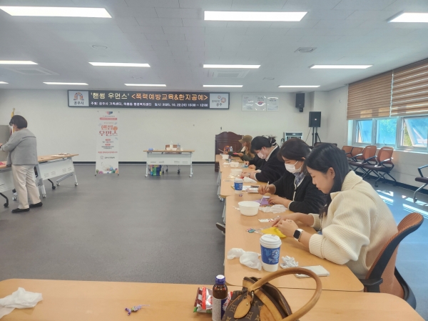 [세종타임즈] 공주시 옥룡동은 지난 22일 행정복지센터에서 공주시가족센터와 협력해 결혼이민자를 대상으로 한지공예 체험과 폭력예방교육을 진행했다고 밝혔다.