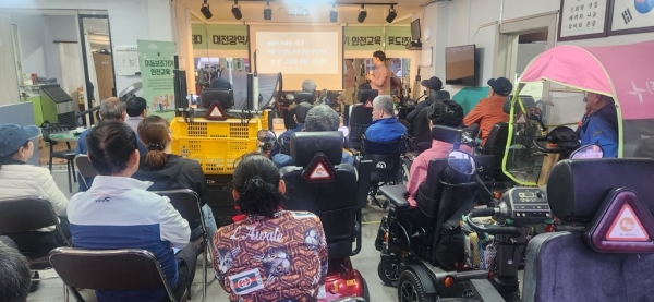 교육에서는 보조기기를 이용하는 장애인을 대상으로 수동 및 전동 휠체어, 전동스쿠터의 올바른 사용법과 관리요령 및 사고 예방을 위한 안전수칙 등을 안내했다.