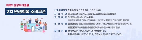 소비쿠폰 신청 및 지급은 오는 10월 31일 마감되며 이후 소비쿠폰 신청 및 지급이 불가한 만큼 군은 미신청자를 대상으로 안내에 박차를 가하고 있다.
