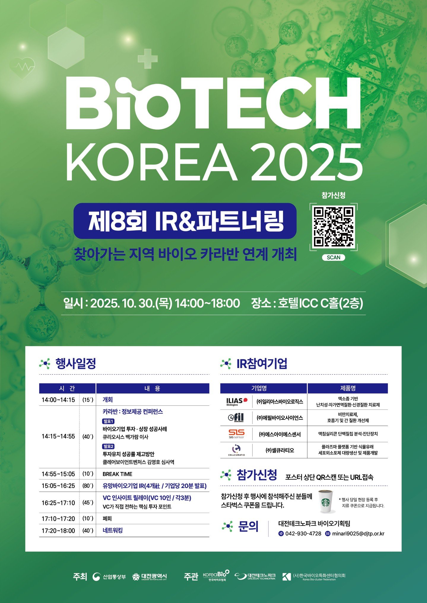 이날 행사에는 ㈜일리아스바이오로직스, ㈜에필바이오사이언스, ㈜에스아이에스센서 ㈜셀큐라티오 등 4개 기업이 IR발표에 참여해 자사 기술력과 사업전략을 선보였다.