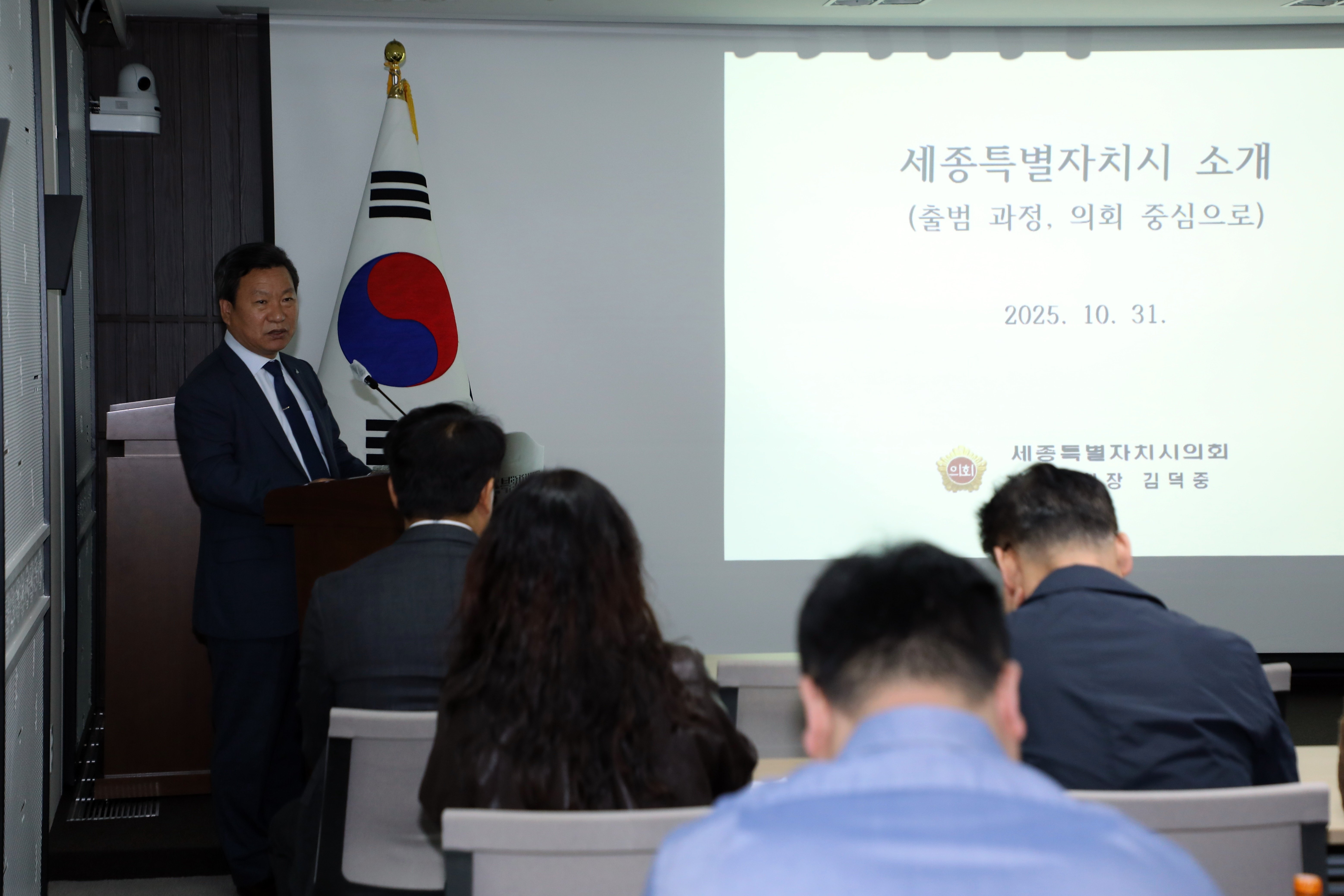 임채성 의장은 “의회 인사권 독립 이후 조직 규모가 확대되면서 새롭게 합류하는 직원이 늘고 있다”며 “세종시는 국가균형성장의 상징이자 행정수도이므로 세종의 역사적 가치와 존재 의미를 깊이 이해하는 것이 시민을 위한 의정활동 지원의 출발점”이라고 강조했다.