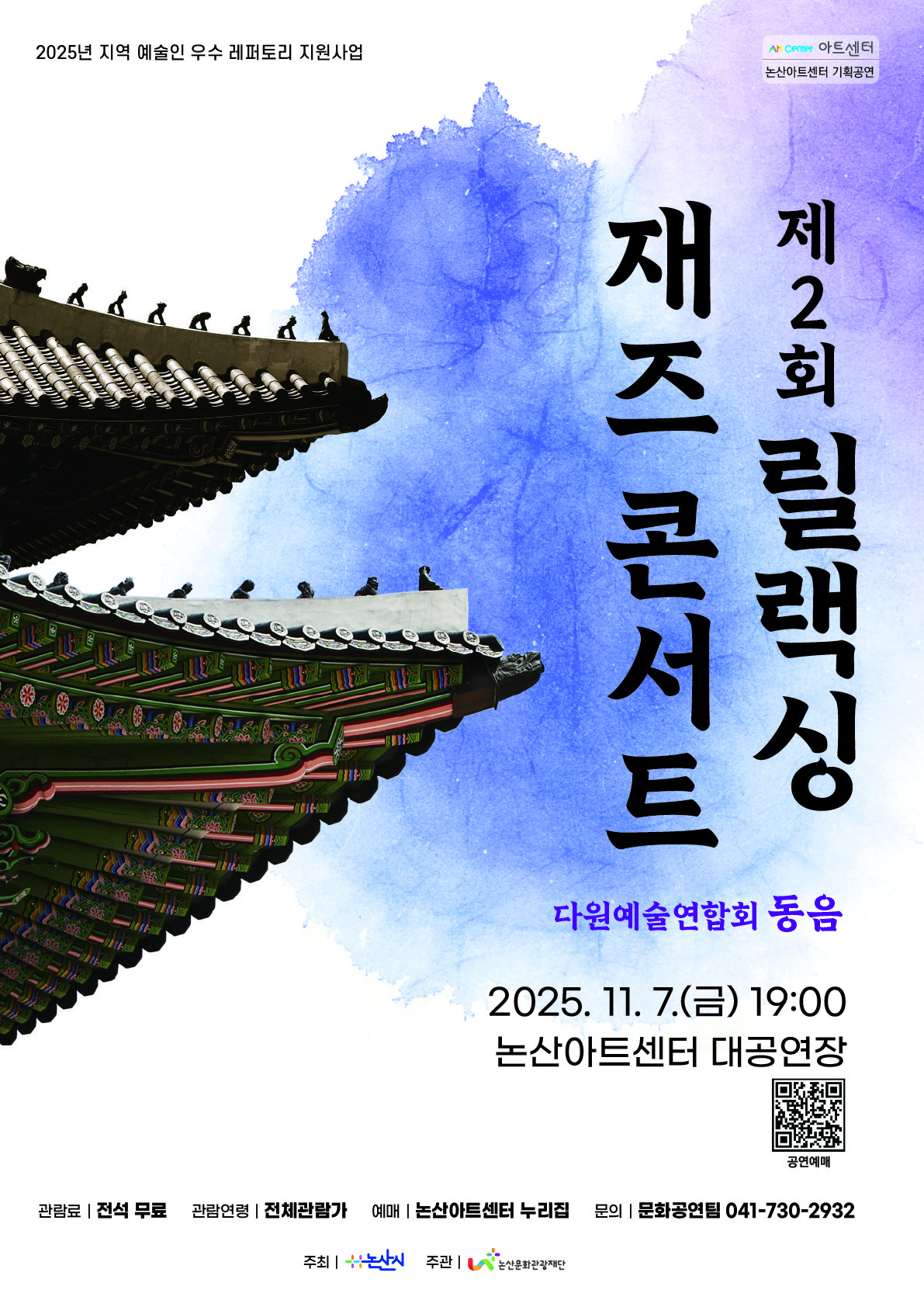 [세종타임즈] (재)논산문화관광재단(이사장 백성현)은 오는 11월 7일(금) 19시에 논산아트센터 대공연장에서 다원예술연합회 동음 ‘제2회 릴랙싱 재즈 콘서트’공연을 진행한다고 밝혔다.