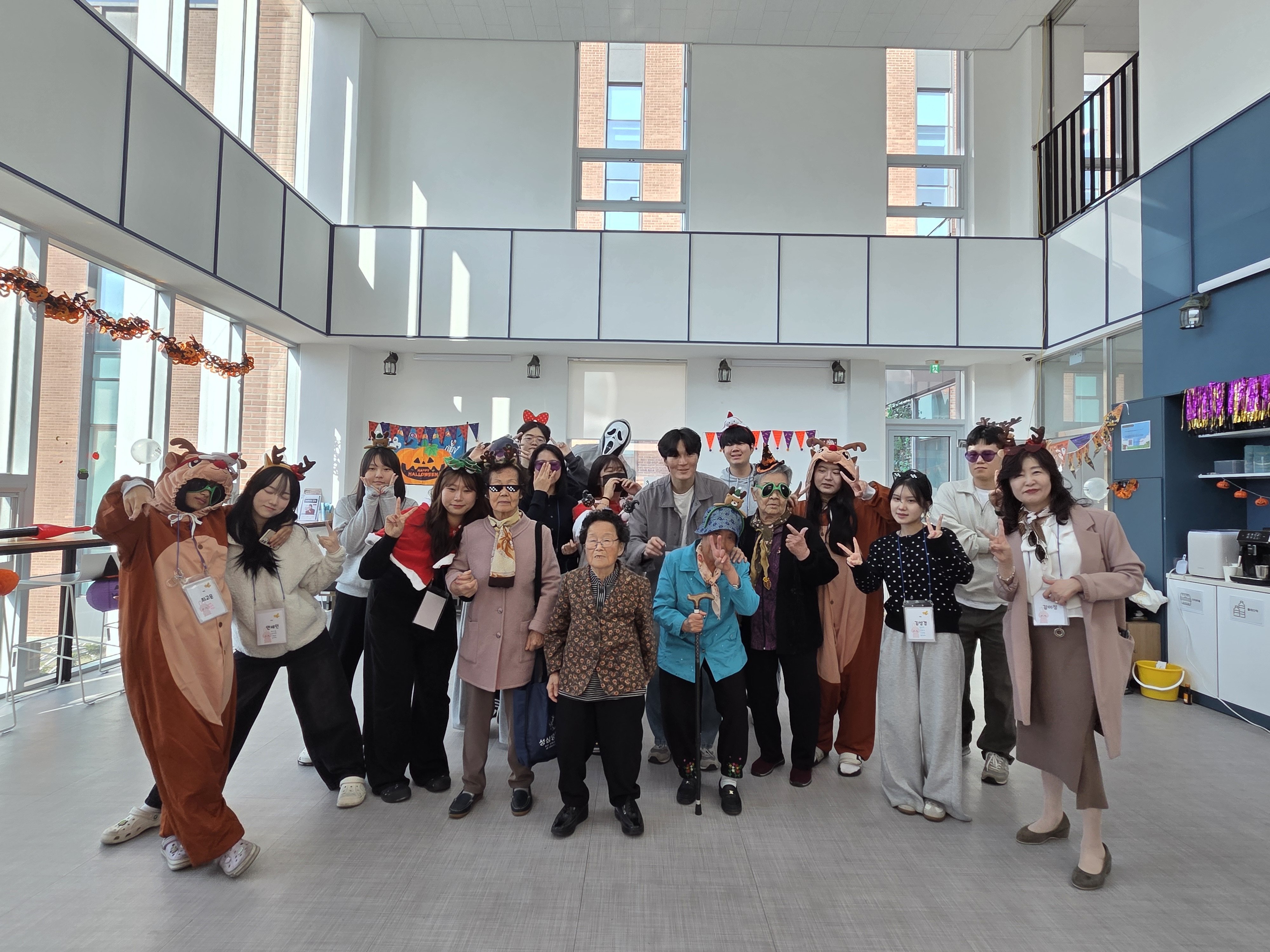 학생들은 어르신의 손을 잡고 사진을 찍어드리며 따뜻한 대화를 나누고 아동들에게는 색연필과 색종이로 직접 만든 핸드메이드 할로윈 소품을 선물했다.
