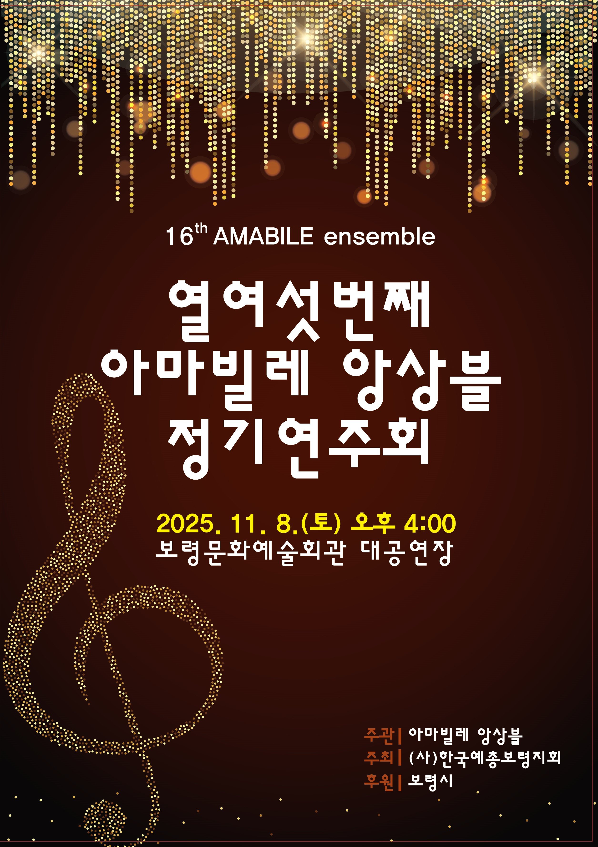 [세종타임즈] 보령시는 아마빌레 앙상블이 오는 11월 8일 보령문화예술회관 대공연장에서 제16회 정기연주회를 개최한다고 밝혔다.