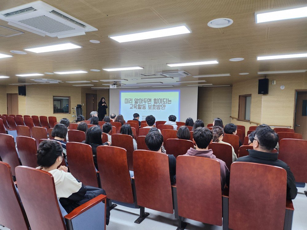이번 연수는 교원의 교육활동을 보호하고 안정적인 수업 환경을 조성하기 위해 마련된 것으로 교사들이 교육활동 침해 상황에 대한 법적 이해를 높이고 실질적인 대응 역량을 기르기 위한 목적으로 진행됐다.