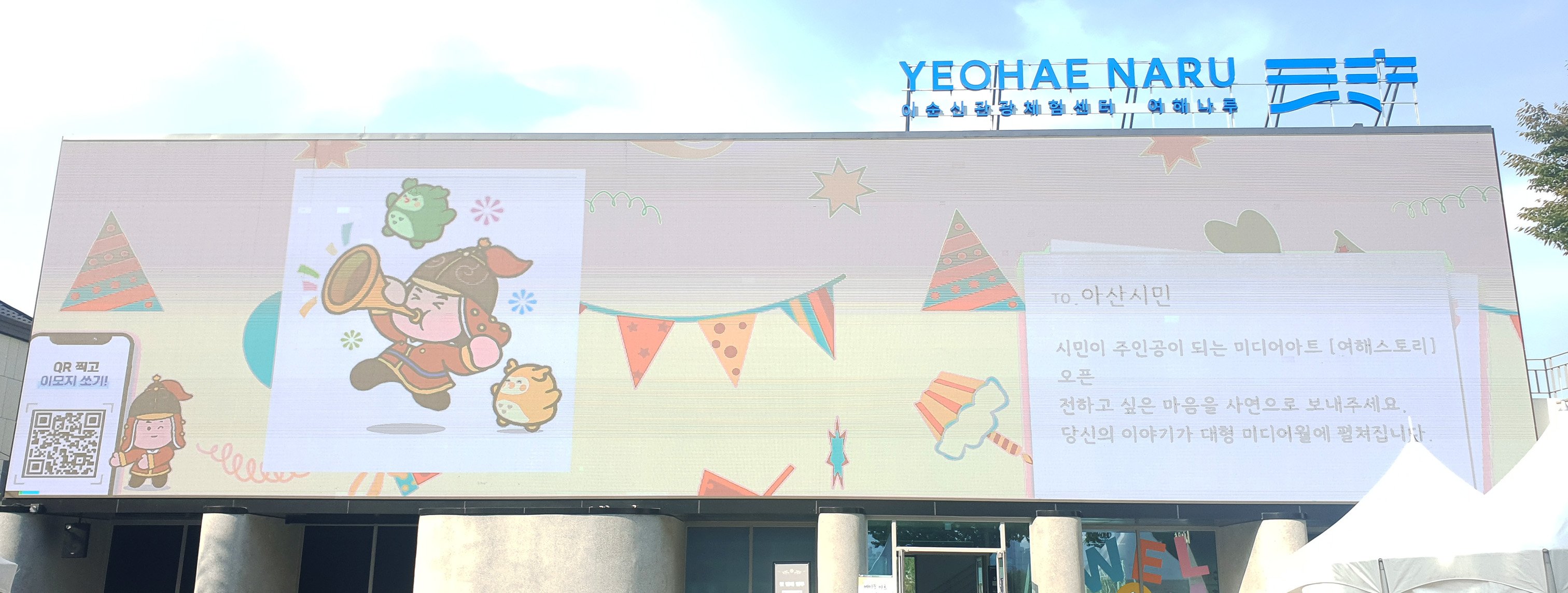 [세종타임즈] 아산시는 11월부터 이순신관광체험센터 외벽의 대형 엘이디 미디어월을 활용해 시민이 직접 참여하는 미디어아트 콘텐츠 ‘미디어월 여해스토리’를 운영한다고 밝혔다.