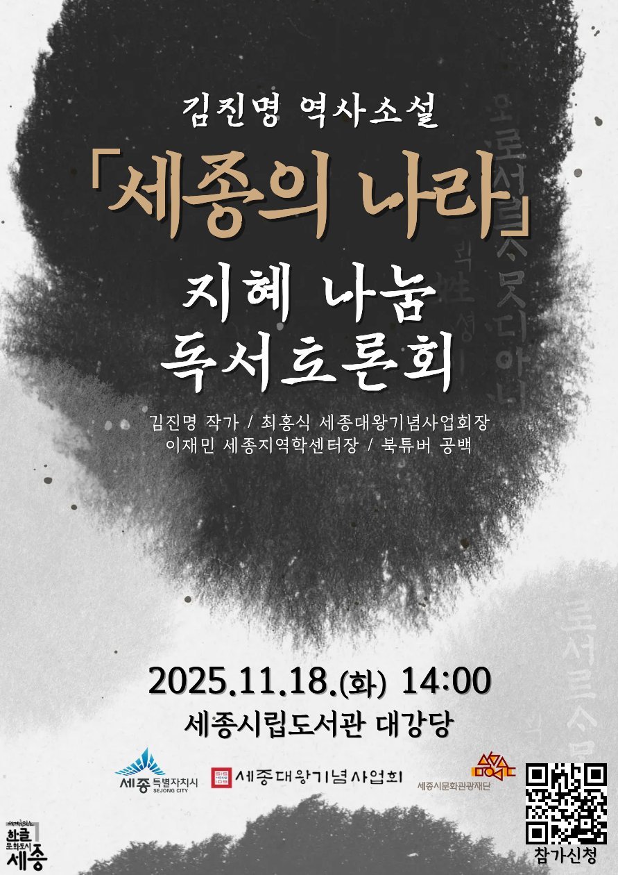 세종시는 세종대왕기념사업회와 함께 오는 18일 오후 2시 세종시립도서관 대강당에서 ‘세종의 나라 지혜 나눔 독서토론회’를 개최한다.