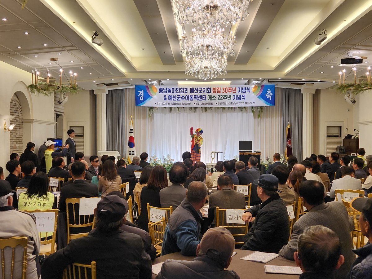 [세종타임즈] 예산군은 지난 10일 더스타웨딩홀에서 ‘충남농아인협회 예산군지회 창립 30주년 기념식’과 ‘예산군수어통역센터 개소 22주년 기념식’을 개최했다고 밝혔다.