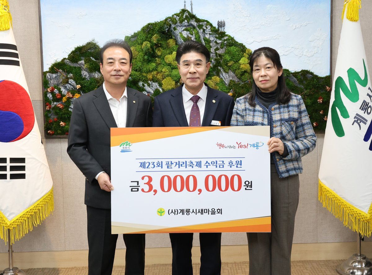 [세종타임즈] 계룡시는 지난 13일 계룡시새마을회에서 제23회 팥거리축제 수익금 3백만원을 시에 기탁했다고 밝혔다.