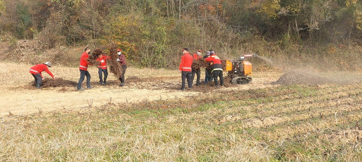 군은 가을철 산불조심 기간 동안 읍·면을 통해 영농부산물 파쇄 신청을 접수하며 산불진화대가 순차적으로 현장을 방문해 무상 파쇄를 지원 중이다.