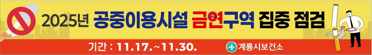 [세종타임즈] 계룡시는 시민의 건강 보호와 쾌적한 공공환경 조성을 위해 2025년 금연구역 합동점검을 11월 17일부터 11월 30일까지 2주간 실시한다고 밝혔다.