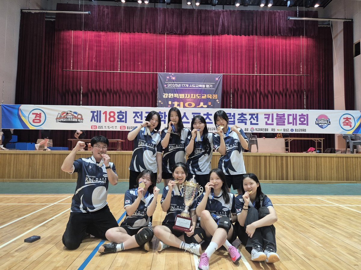 [세종타임즈] 설화고등학교 킨볼 여자팀이 11 월 15 일 ~ 17 일 까지 강원도 횡성 국민체육관에서 열린 2025 년 제 18 회 전국 학교스포츠클럽 축전 여자고등부 킨볼 대회에서 전국 1 위를 차지했다.