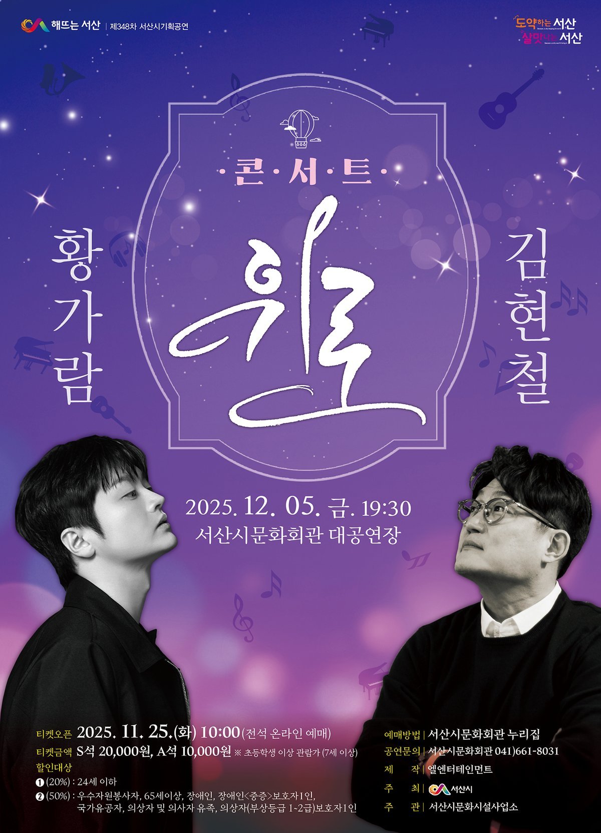 이번 공연은 오는 12월 5일 오후 7시 30분 서산시문화회관 대공연장에서 진행되며 7세 이상관람이 가능하다.
