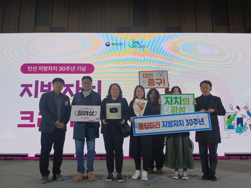 [세종타임즈] 대전 중구는 행정안전부가 주관한 ‘지방자치 30주년 기념 크리에이터 경진대회’본선에서 OO상을 수상했다고 21일 밝혔다.