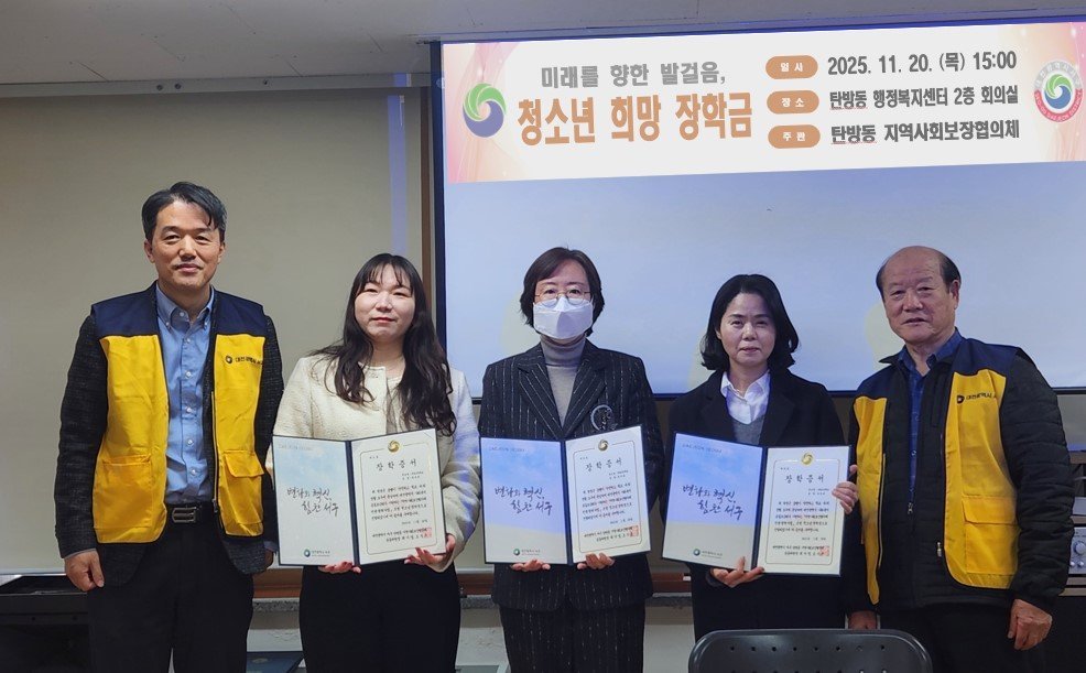 탄방동 지역사회보장협의체는 관내 주민들과 함께 십시일반으로 장학금 3백만 원을 모금해, 어려운 환경에서도 학업을 이어가는 학생 10명에게 나눠 전달했다고 21일 전했다.