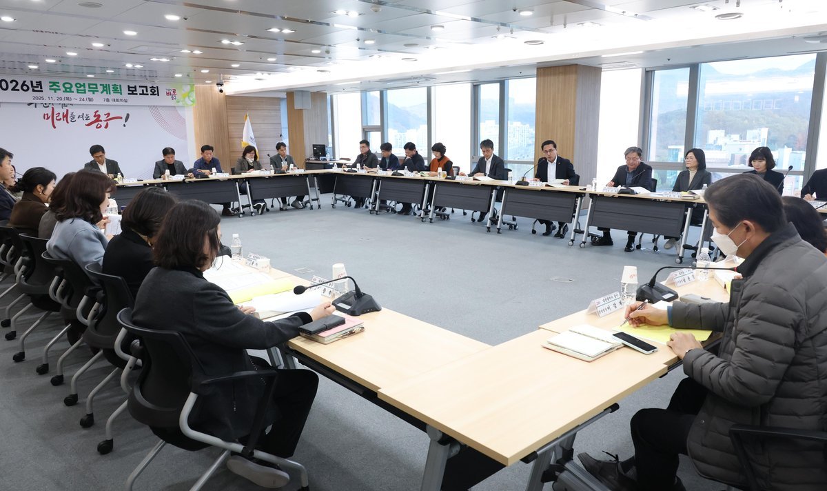 [세종타임즈] 대전 동구 는 지난 20일부터 24일까지 구청 대회의실에서 ‘2026 년 주요 업무계획 보고회 ’를 열고, 민선 8 기 핵심 사업 추진 성과를 점검하며 내년도 전략과제를 논의했다고 밝혔다.