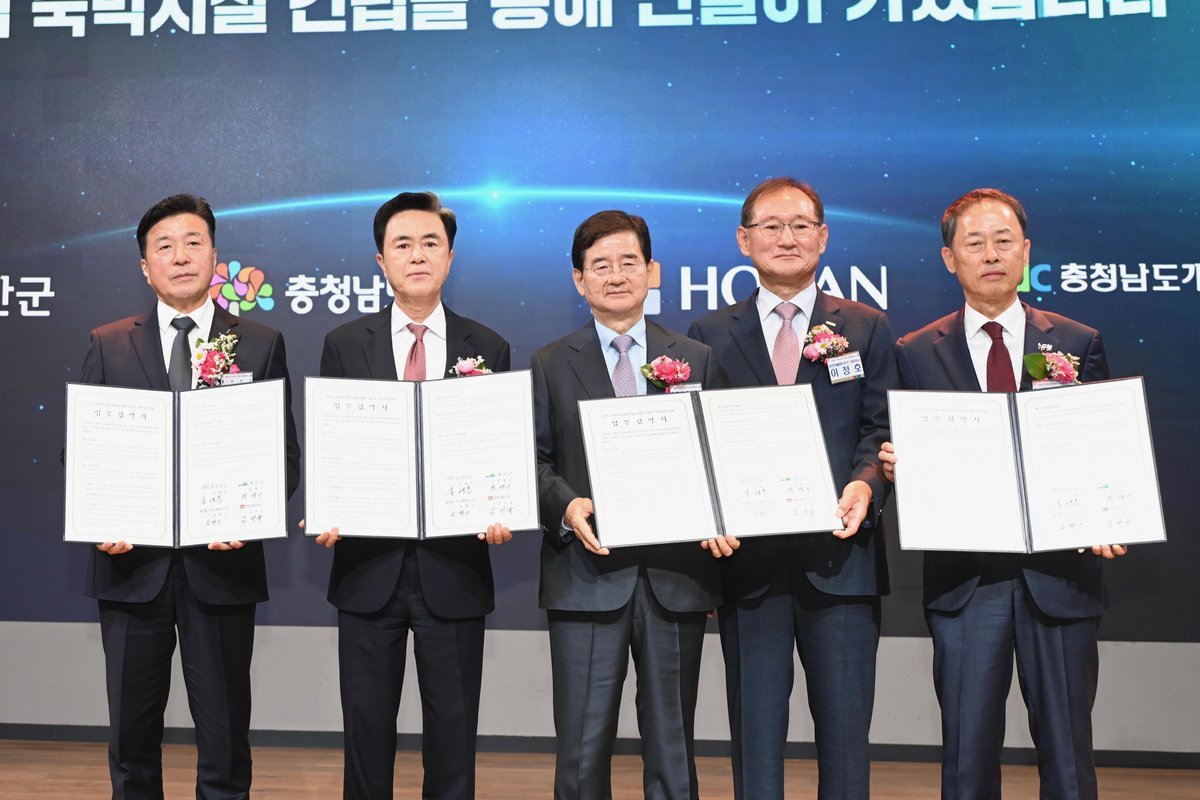 [세종타임즈] 예산군은 24일 충청남도, 충남개발공사, ㈜호반호텔앤리조트와 함께 덕산온천관광지에 고품격 숙박시설 및 컨벤션 기능을 갖춘 복합 휴양시설 건립을 위한 업무협약을 체결했다.