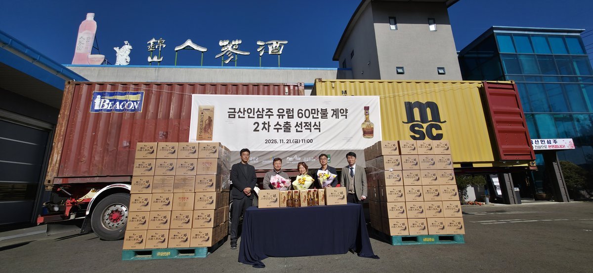 [세종타임즈] 금산군 금성면 소재 인삼주 제조업체 ‘금산인삼주’는 지난 21일 10만 달러 규모 인삼주를 선적하며 2차 오스트리아 수출길에 나섰다.