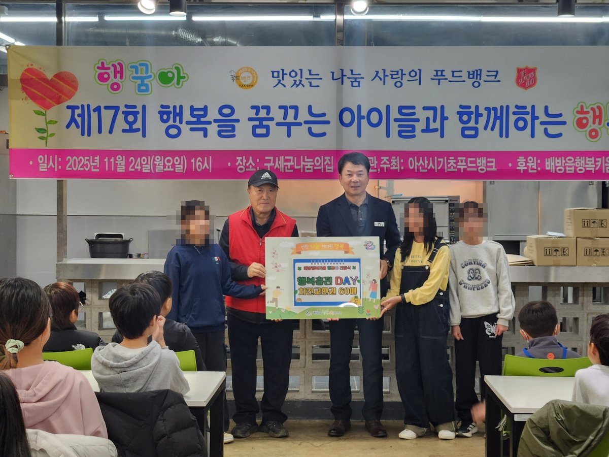 전달식은 배방읍 구세군나눔의집에서 아산시기초푸드뱅크, 지역아동센터 관계자, 배방읍 행복키움추진단이 함께한 가운데 진행되었으며, 배방백합라이온스가 아동들의 식사 준비 비용 일부를 후원해 지역사회에 따뜻한 나눔의 의미를 더했다.