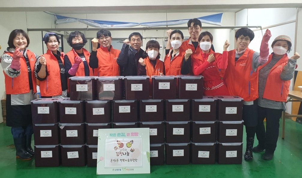 [세종타임즈] 아산시 온양2동 행복키움추진단은 지난 25일 온양2동 행정복지센터에서 ‘사랑의 김장 나눔 행사’를 개최하고, 직접 담근 김장김치와 수육을 관내 저소득 취약계층 30가정에 전달했다.