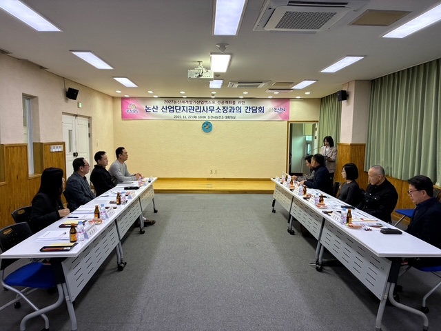 이번 간담회는 엑스포의 의미와 추진 상황을 공유하고, 지역 산업단지가 행사에 동참할 수 있는 구체적인 방안을 모색하기 위해 마련됐다. 논산 일반산단과 동산 일반산단 등 주요 산업단지 관리사무소장 5명이 참석해 의견을 나눴다.
