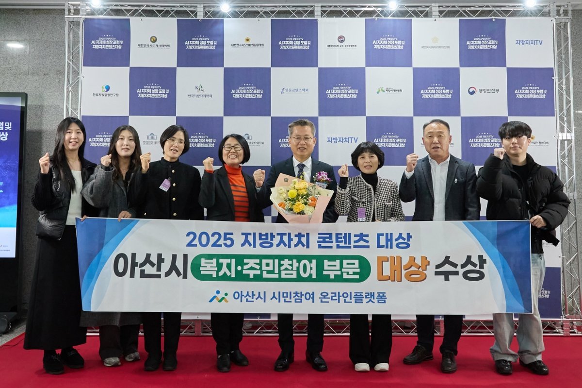 [세종타임즈] 아산시가 27일 국회의원회관 대회의실에서 열린 ‘2025 지방자치 콘텐츠대상’에서 기초자치단체 복지·주민참여 부문 대상을 수상했다.