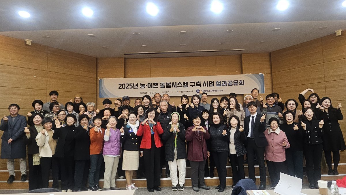 [세종타임즈] 충남사회서비스원은 11월 27일 홍성 에덴힐스에서 사업참여자 60여명이 모인 가운데 2025년 농·어촌 돌봄시스템 구축사업 성과공유회를 개최했다.