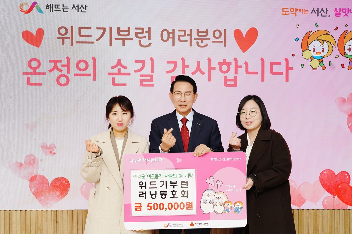 시는 이날 시청 시장실에서 이완섭 서산시장, 이미라 위드기부런 러닝동호회 회장 등이 참석한 가운데 기탁식을 개최했다.