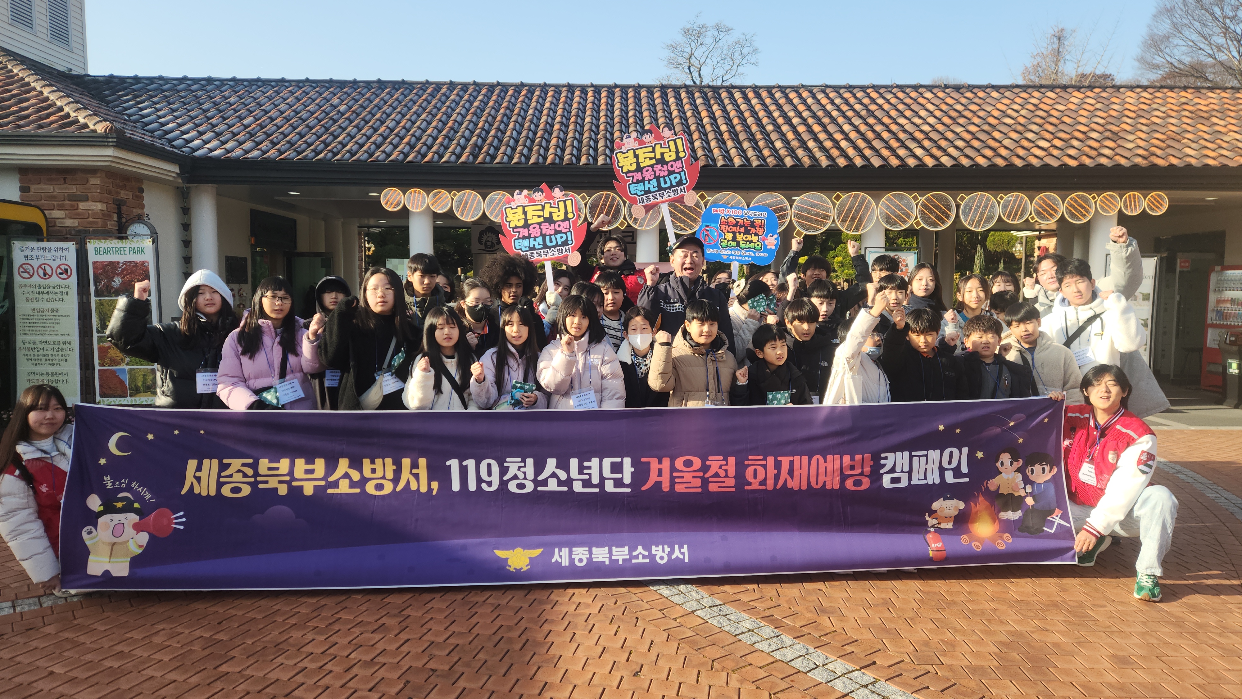 [세종타임즈] 세종북부소방서는 지난 29일 베어트리파크에서 불조심 강조의 달을 맞아 119청소년단과 함께 겨울철 화재예방 캠페인과 소방안전교육을 실시했다.