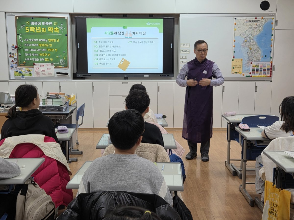 1차시는 ‘선비와 나, 우린 닮았을까요?’에서는 조선시대 대표 선비 퇴계 이황과 율곡 이이를 통해 선비의 올바른 마음가짐에 대해 생각해보는 활동이 이루어졌다. 학생들은 율곡 이이가 스스로 마음을 다잡기 위해 남긴 ‘자경문’의 11가지 다짐을 함께 읽고, 이를 일상 속에서 어떻게 실천할 수 있을지 생각을 나누었다. 이어진 ‘착한 사총사’ 활동에서는 따뜻한 마음, 올바른 행동, 예의를 지키는 마음, 현명한 판단의 의미를 배우고, 주변에서 실천할 수 있는 사례를 이야기하는 시간을 가졌다.