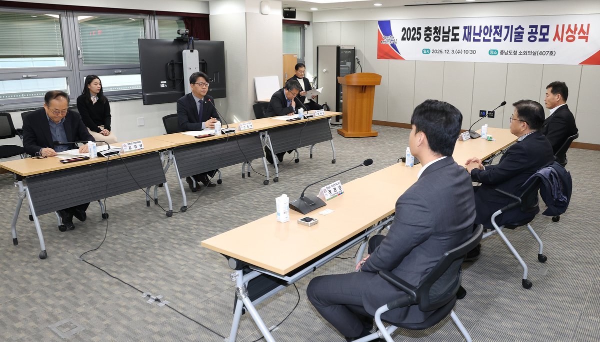 도는 3일 도청 소회의실에서 신동헌 도 자치안전실장, 수상자 등 20여 명이 참석한 가운데, ‘2025년 재난안전기술 공모 시상식’을 개최했다.