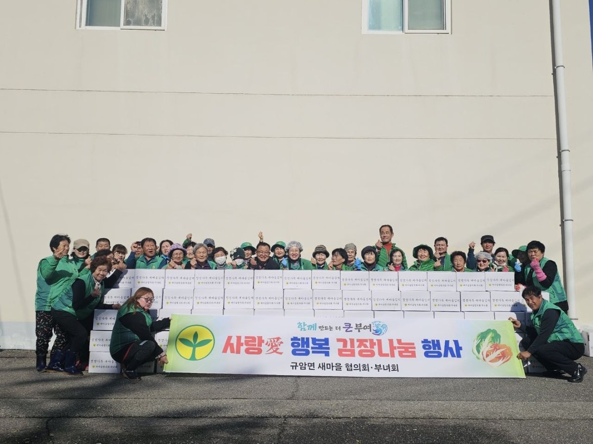 회원들은 직접 재배한 신선한 배추와 무를 수확해 정성스럽게 김치를 담그고, 완성된 김치는 규암면 내 130가구에 전달될 예정이다.