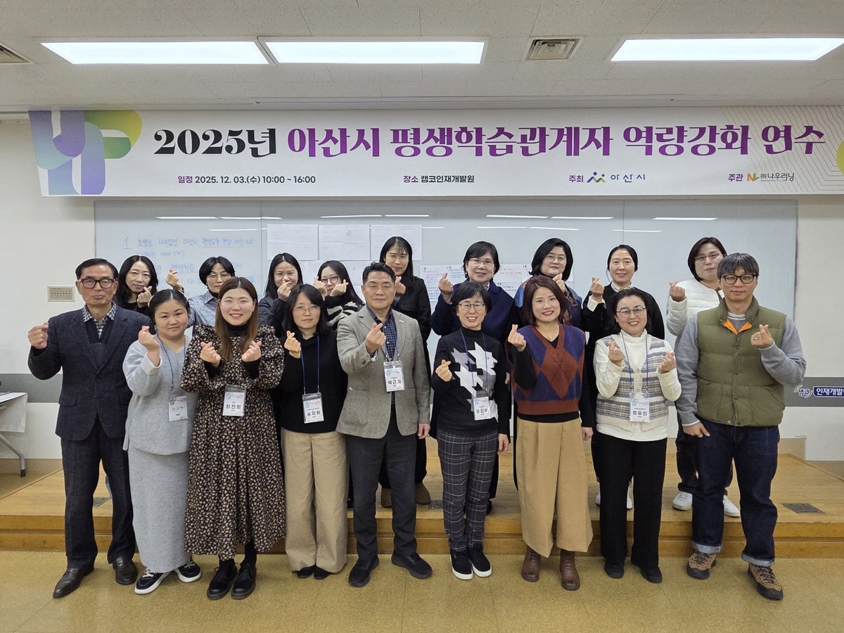‘디지털 시대 사람을 연결하는 아산형 평생학습 생태계’를 주제로 진행된 이번 연수는 2026 평생학습 정책 이슈 및 최신 트렌드 분석 특강, 지역 기반 협력 관계망 구축을 위한 그룹 연찬회, 아산시 평생학습 홍보 콘텐츠 실습 프로그램 등 실질적 역량 강화를 위한 다양한 과정으로 구성됐다.
