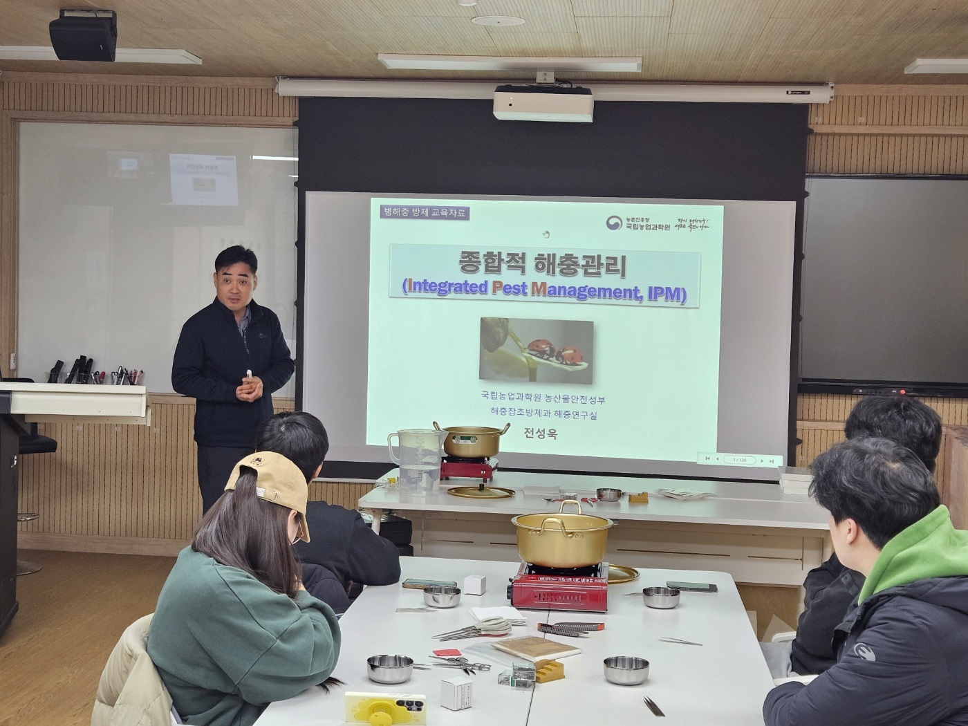 이날 교육에는 국립농업과학원 해충잡초방제과 전성욱 박사가 강연자로 참여해 병해충 발생 환경, 최신 진단 기술, 해충 표본 관찰·동정 방법, 예찰 기반 방제 전략 등 IPM의 주요 요소를 체계적으로 소개했다.